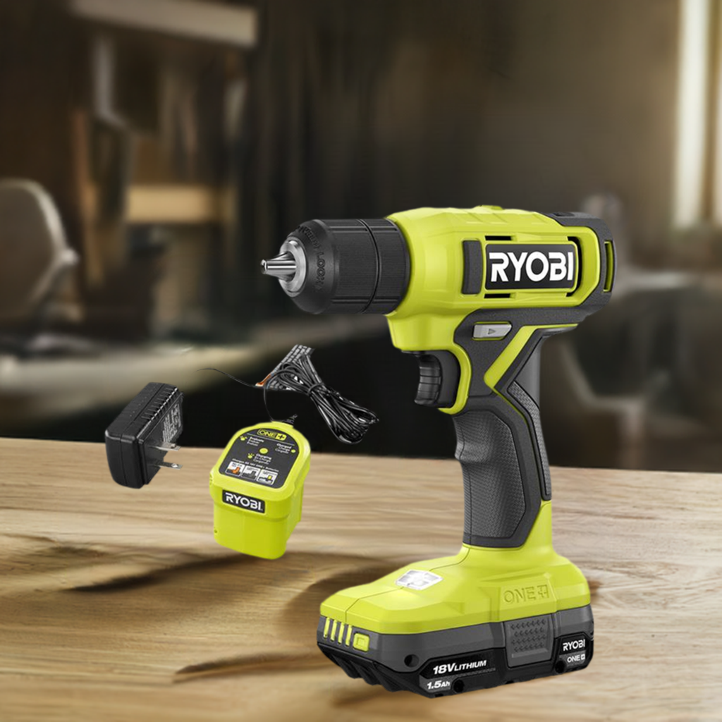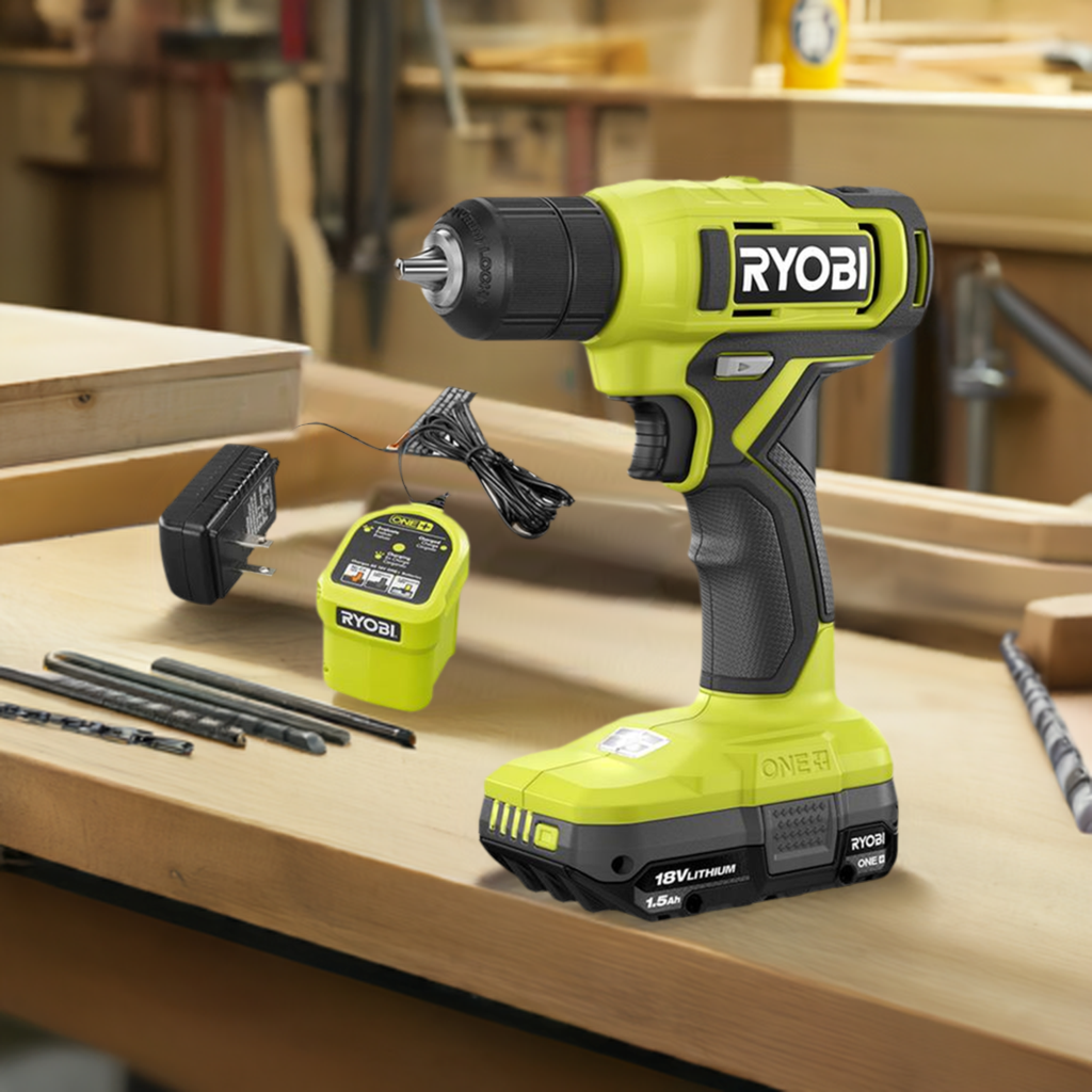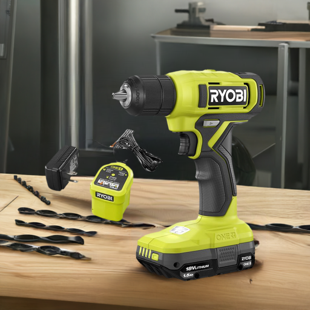 The RYOBI 18V ONE+ 1/2" Drill has the power and speed to tackle everyday projects around the home like drilling pilot holes or driving screws. Designed with a 3/8” keyless chuck, attach most drill bits and various drill attachments, making this the perfect tool to have handy for projects like building, assembling, hanging and so much more. With speeds up to 600 RPM, quickly drill into a variety of materials. Weighing in at a light weight 2.8lbs., this drill's design allows for effortless and easy handling. Plus, it features an on-board LED work light for visibility in dimly lit spaces and a variable speed trigger for control in all applications. Best of all, it is part of the RYOBI ONE+ system where any 18V ONE+ battery works with any 18V ONE+ product. This 18V ONE+ 1/2" Drill includes PCL201 18V ONE+ 1/2" Drill, PBP002 18V ONE+ 1.5Ah Battery, 18V Charger